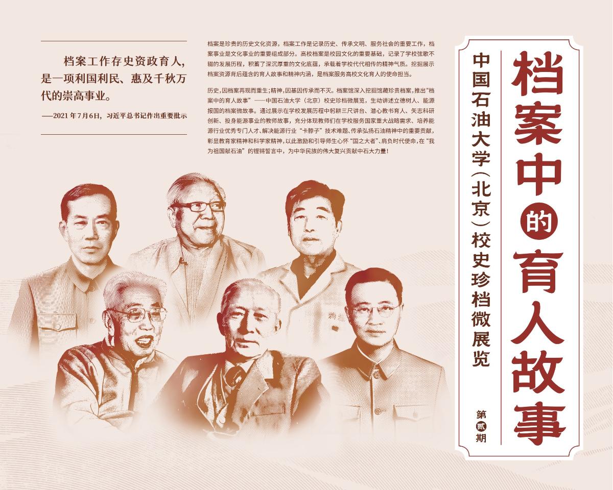 6月9日下午,在第十八个国际档案日到来之际,中石大“为党育人 为国育才”“传承之舟”思享汇暨“档案中的育人故事”——中国石油大学(北京)校史珍档微展览(第二期)开展,缅怀为中国石油高等教育事业以及能源行业发展作出重要贡献的六位“大先生”:朱亚杰、周世尧、蔡强康、牟永光、陈如恒、郭天民,展现他们毕生践行教育家精神和科学家精神的崇高风范。
