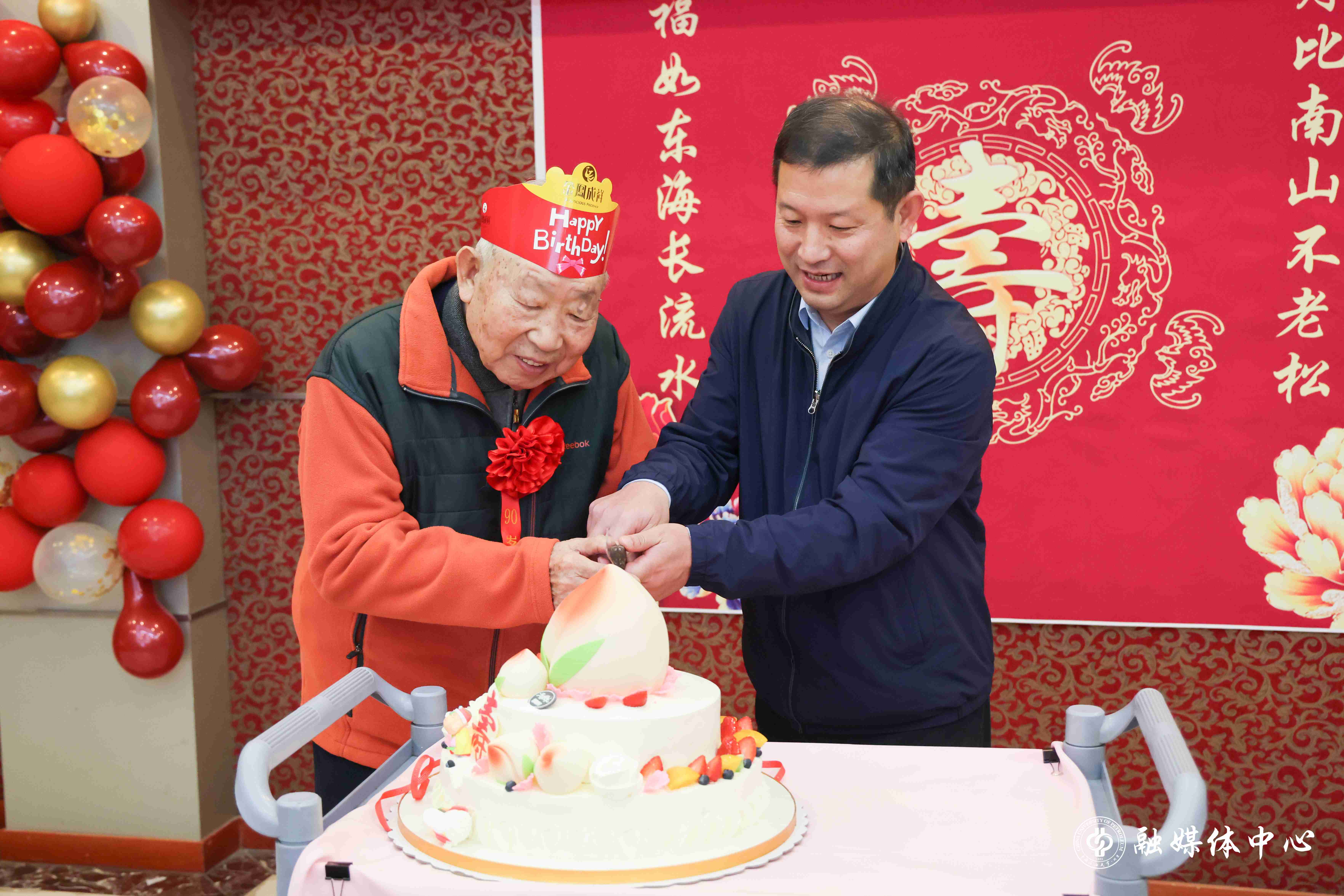蒲俊霖宣读寿星名单,校领导和职能部门负责人为寿星佩戴大红花。王同奇和寿星张铁麟共切生日蛋糕,90岁老教师张铁麟即兴表演天津快板“人人争当老寿星”。随后,大学生艺术团李忠洋、才懿带来京剧表演《锁麟囊》,为老教师们祝寿。