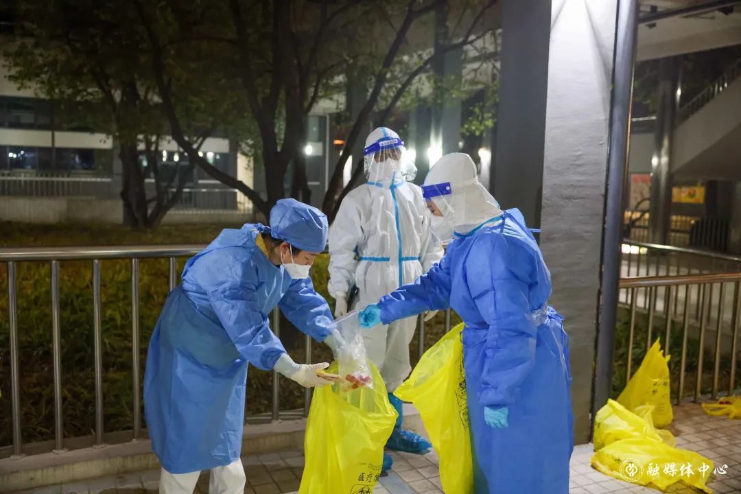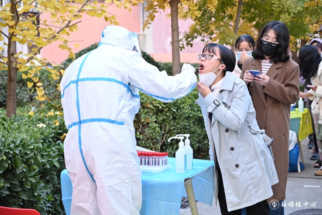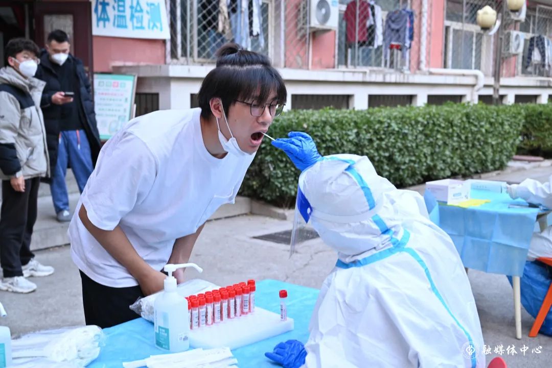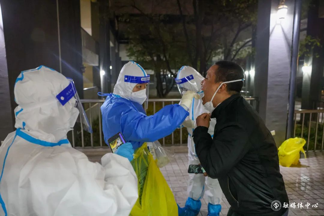 快速开展全员核酸,分片区设点检测,封控区内上门采样,师生依序听从指挥,医务人员不遑暇食。