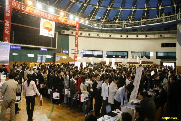 10月12日,我校在多功能厅举办2008届毕业生中国石油专场招聘会,包括长庆油田勘探局、大庆油田公司、青海油田公司、四川石油管理局、东方地球物理公司、中国石油集团海洋工程有限公司、新疆石油管理局、新疆油田公司等54家企业单位派代表参加招聘会。