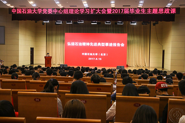 在全校师生员工深入贯彻落实全国高校思想政治工作会议精神和习近平总书记重要讲话精神之际,6月15日下午,中国石油大学在中油大厦三层报告厅召开了一次意义特殊、内容特别的党委中心组理论学习扩大会暨2017届毕业生主题思政课。校领导山红红、张来斌、刚文哲、雷玉江、徐春明、庞雄奇,机关职能部门、直属单位主要负责人,学院(研究院、...