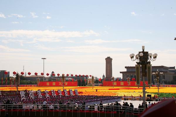 10月1日,首都各界庆祝中华人民共和国成立60周年大会在北京举行。盛大的阅兵仪式,壮观的群众游行,美轮美奂的国庆之夜,这些美丽的画面已经成为历史的瞬间,定格在人们的心中。我校近1300名师生有幸参加了首都国庆60周年群众游行和群众联欢晚会。