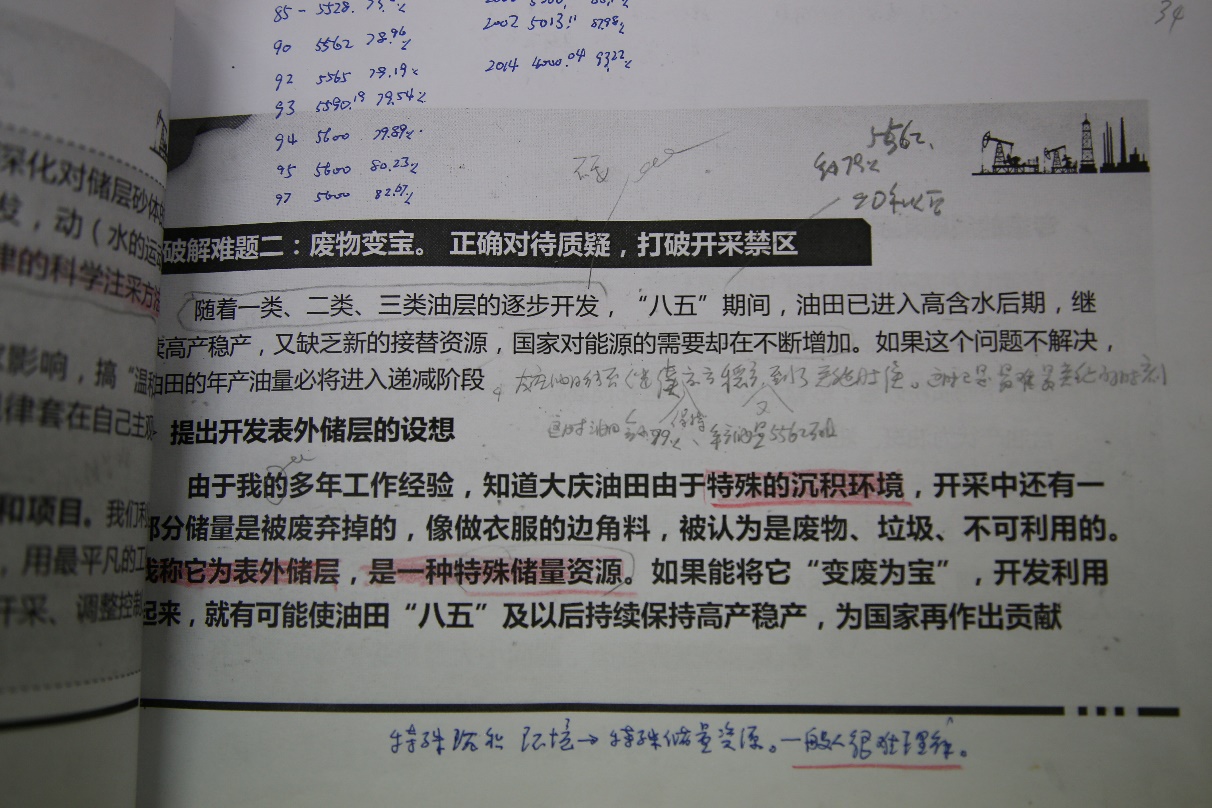 展览筹备策划时,为突出体现王启民的科研攻关之路,对今天的青年科技工作者有示范引领作用,原定以 “王启民的科研长征路”为展览主题。启民校友得知后,态度很坚决地要求我们更改为“大庆油田开发的科研长征路”。老人家说,大庆油田高产稳产27年,是所有大庆油田科研人员共同奋斗而得出的成果,绝不能写成好像是我一个人的贡献。从中我们看到了启民校友的严谨、谦虚、淡泊名利、对大庆油田的热爱和对团队的高度重视!