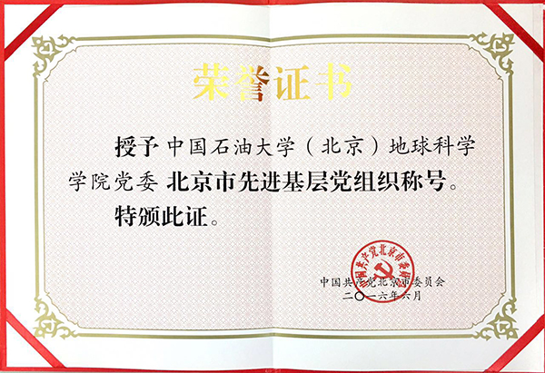 石大地球科学学院党委荣获北京市先进基层党组织荣誉称号