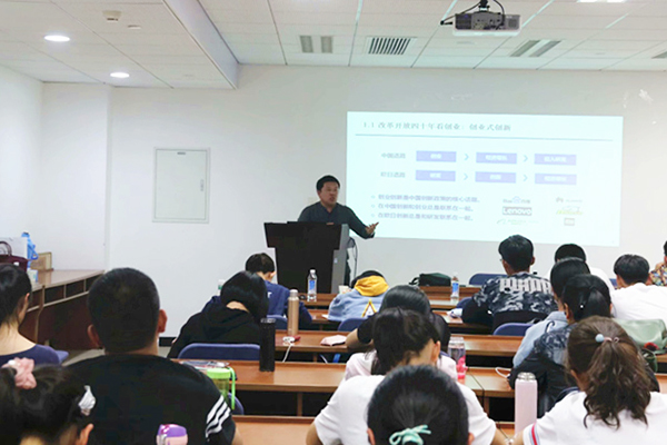 周涛从如何理解双创、创业的代际演化、对新一代创业者的新要求三个方面进行了讲解,结合菜鸟网络、旷视科技和伏牛堂等公司实例阐述了“瞪羚企业”“独角兽企业”特点,分析了公司创业类型,强调了培养创业者的洞见能力、培养新型创业者良好心态的重要性。讲座后,周涛细致解答了同学们提出的问题,分享了自身创业经验,使同学们深化了对创业的认识。