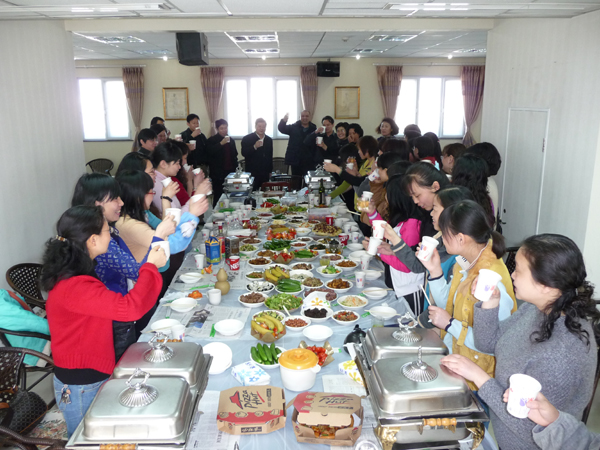 “三八”节庆祝午宴活动于3月6日中午11时在教职工活动中心举行,院领导、各系中心的主任、书记以及部分男教职工前来为女教职工祝贺节日,他们还为女教职工带来了美酒。值得一提的是,此次午宴的美味佳肴是由女教职工自带的亲手烹制的近40种拿手好菜,如,梅菜排骨、醉酒鸭、酱香牛肉、可乐鸡翅、各式美味凉菜、日本寿司、诸暨年糕、舟山鱿鱼、花生米、土豆丝、八宝发糕等。午宴上,大家一边品尝着美味佳肴,一边切磋着厨艺,祝福声、欢笑声交织在一起,教师们度过了一个有意义的节日。