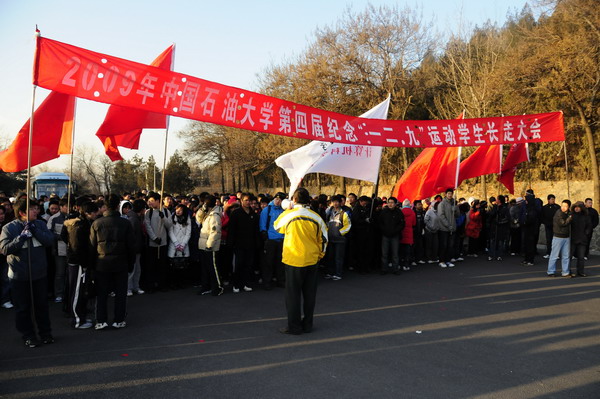 12月12日,由体育教学部组织的2009年第四届中国石油大学(北京)纪念“一二.九”运动学生长走活动在十三陵水库举行。校党委书记蒋庆哲、副校长徐春明及各院系负责人、学生共730人参加了本次长走活动。