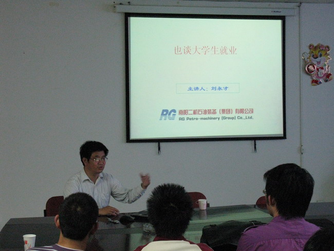 5月5日下午,中国石油大学机械与储运工程学院邀请南阳二机石油装备集团有限公司人力资源部部长刘永才,在新综合楼521会议室给同学们做了“也谈大学生就业”的职业规划讲座。