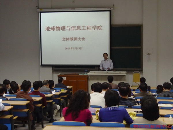 5月13日下午,地球物理与信息工程学院全体教师大会在新综合楼第四阶梯教室召开。学校相关部门负责人和物信学院全体教师参加了此次大会。