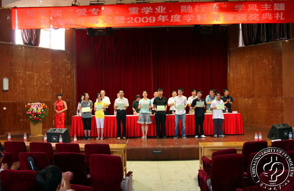 6月4日下午,中国石油大学理学院第五届“爱专业、重学业、融行业”学风主题教育活动开幕式暨2009年度学科竞赛颁奖典礼在科学会堂举行。副校长徐春明、学校相关职能部门和学院负责人应邀出席。