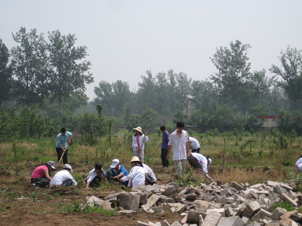 北京智光特殊教育学校是智障孩子们的摇篮。自今年5月20日起,智光本着“农场教育”这样一个全新的教育理念,开始着手位于后白虎涧村的新农场校区的建设工作。农场里大片的土地仍然杂草丛生,没有清理。为使得孩子们能早日住进新家园,化工08-2班团支部于端午节假期组织全体同学来到新校区做志愿服务。这次服务的主要任务就是清除杂草,同学们从上午九点半一直工作到下午五点,只中午休息了一个小时。在同学们的努力下,杂草地基本清理干净了,王校长也对同学们的劳动质量给予了高度的评价,说石油大学是来新校区志愿服务的六所高校里战斗力最强,最有吃苦耐劳精神的队伍。