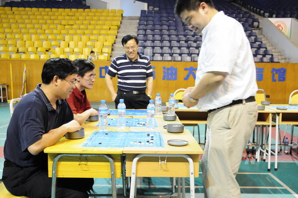 6月20日下午,中国棋院张文东九段、王磊八段和刘菁八段三名围棋国手应邀到中国石油大学与师生进行棋艺联谊活动。活动在体育馆举行,近三十名师生与三位国手手谈联谊,活动持续了近三小时,气氛专注而轻松。在几位国手的热情指导下,师生们获益匪浅。