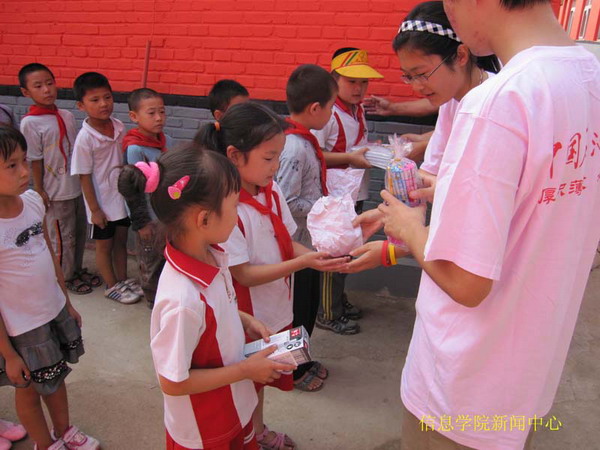 除此之外,信息学院建立了比较成熟的志愿服务体制,在各班内都设有志愿者库,志愿者协会设有志愿者总库。及时发布志愿服务信息,为愿意奉献帮助他人的同学提供了服务平台。今后信息学院还会将这种关爱农民工子女服务行动拓展到更多学校。