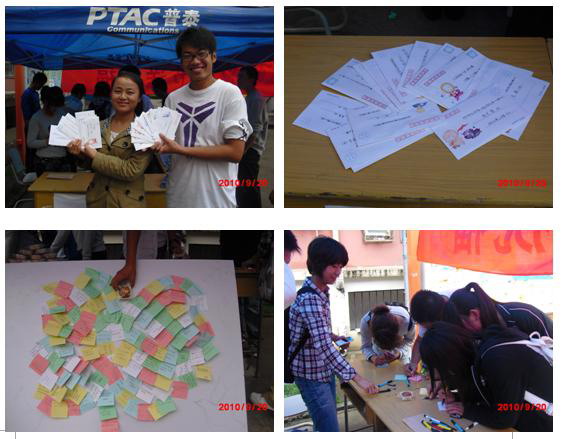 活动以分发信封、回收家书、收集祝福和赠送月饼等形式进行,总共递出新生家书百余封,收到祝福卡片逾二百张,送出月饼三百多个,下午6点半,活动圆满结束。通过这次活动,让第一次远离家乡的2010级新生切实感受到到学院的关心,让每个新生都更加融入机械与储运工程学院这个温暖的大家庭,在整个活动过程中,同学们表示出很高的热情。