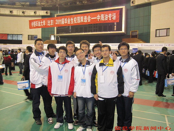 10月28日,中国海洋石油公司在中国石油大学(北京)举办了大型校园人才招聘会。地球物理与信息工程学院青年志愿者协会志愿者代表团参与了招聘会的志愿服务工作。
