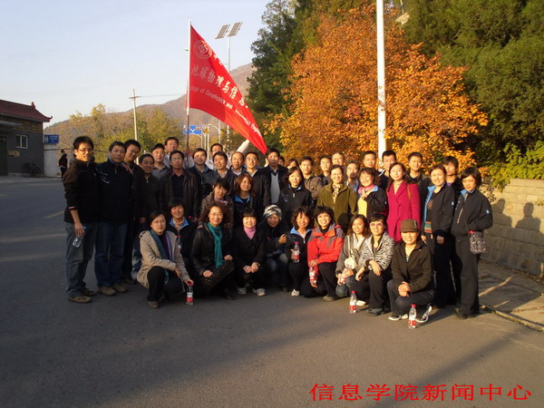 深秋时节,落叶缤纷,十三陵的景色异常美丽。老师们轻快地走在山间小路上,以饱满的激情、飒爽的英姿展示着信息学院的风采。同时,老师们彼此交流着各自的教学经验,取长补短,在娱乐中提高自己的教学素养。整个长走活动中老师们兴致盎然,气氛十分融洽。