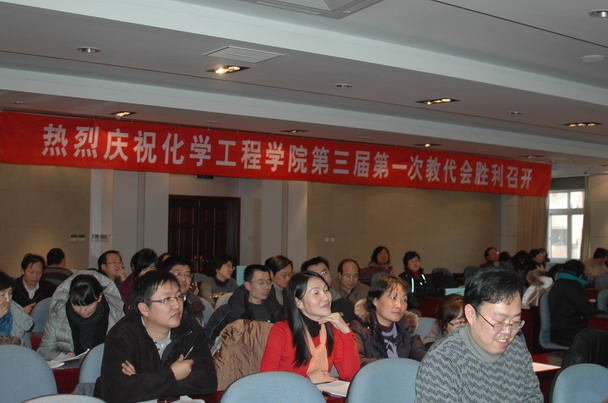12月20日下午,化学工程学院第三届一次教代会资料在国际交流中心306会议室召开。大会由学院工会主席孙学文主持,除上课的教师外,学院78名教职员工参加了会议。