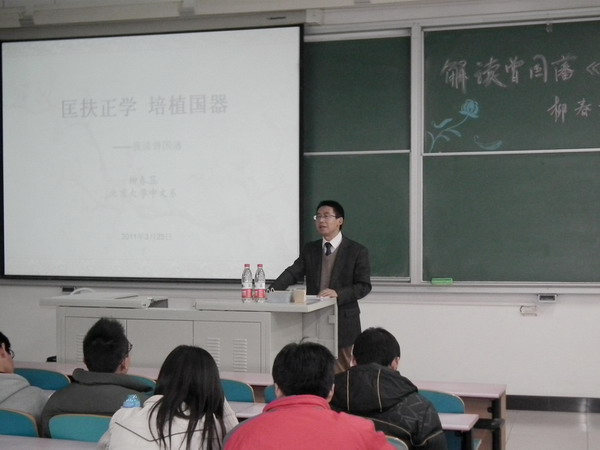 3月28日晚上,机械与储运工程学院在第三教学楼109举行了以“匡扶正学,培植国器”为主题的解读曾国藩《原才》国学知识讲座。本次讲座邀请了北大中文系柳春蕊教授主讲。