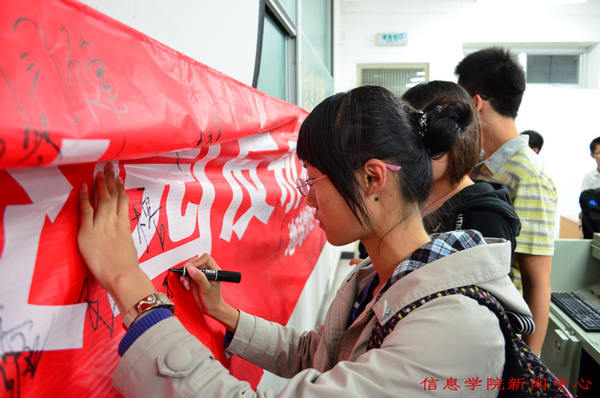 活动组织观看了《毒瘤——邪教透视》电视专题片,学习了《识别和防范用宗教名义邪教宣传提纲》,进一步加强反邪教教育引导。通过学习,在场同学深刻认识到了邪教活动的隐蔽性、反复性及严重的危害性,提高了同学们对邪教的警惕意识。最后,同学们纷纷在反邪教宣传条幅上签上了自己的姓名。