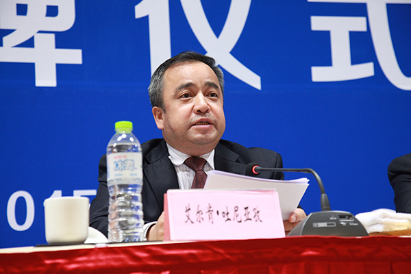 艾尔肯•吐尼亚孜在讲话中指出,高等教育作为推动经济社会发展的重要力量,作为科技第一生产力和人才第一资源的重要结合点,其发展水平和质量决定着人才的创新创造能力,决定着新疆能否实现科学跨越、后发赶超,与全国同步建成小康社会目标。他希望,面对新时期新阶段丝绸之路经济带核心区建设的重大历史机遇,克拉玛依校区传承发扬优良办学传统,努力把学校建设成为环境优美、理念先进、模式创新、特色鲜明的高水平大学,为新疆高等教育事业发展及“教育强区、人才立区”战略的实施提供有力支撑。