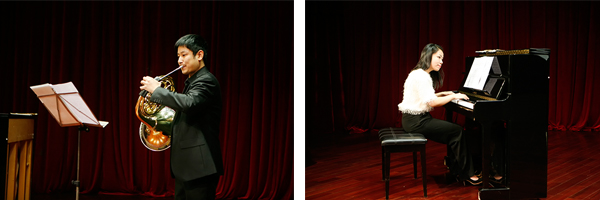 1月7日晚,由中国石油大学党委宣传部、校工会和地球科学学院联合主办的“迎新年‘圆号与钢琴’音乐会”在校园艺术中心举行。来自天津音乐学院的青年圆号教师黄涛与青年钢琴演奏家童心联袂为近200名师生带来了一场别具一格的古典音乐盛宴。