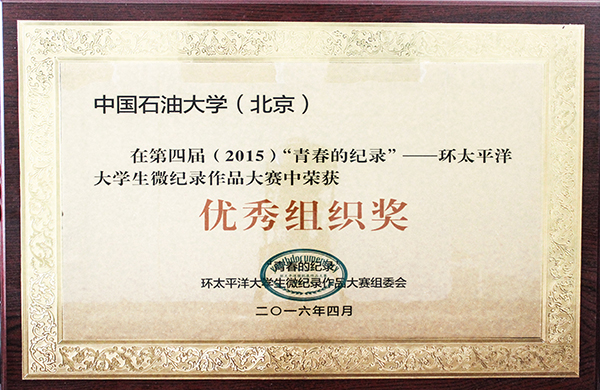 近日,第四届“青春的纪录——环太平洋大学生微纪录作品大赛”颁奖典礼在北京电视台举行,中国石油大学获“优秀组织奖”。