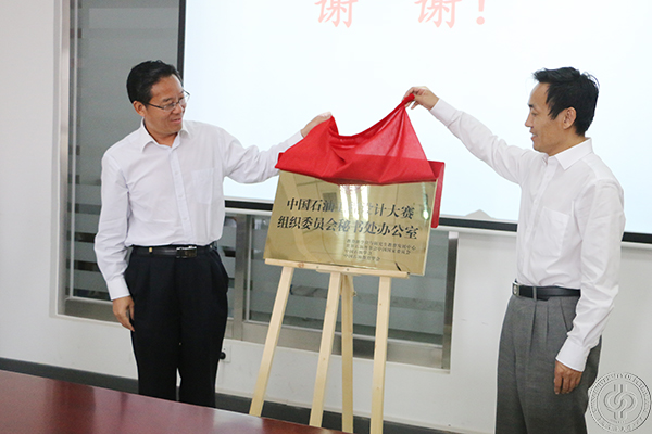 徐春明与关长空共同为“中国石油工程设计大赛组委会秘书处办公室”揭牌。办公室为大赛秘书处的常设机构,负责各分赛区的联络和大赛的各项日常工作。