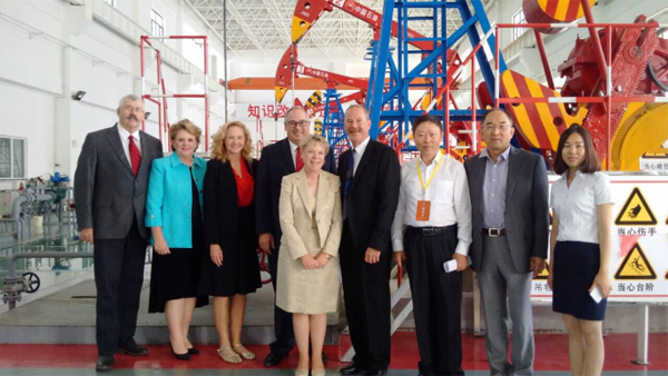杰拉德•克兰西一行是应张来斌邀请专程出席克拉玛依校区首届新生开学典礼,并商谈与克拉玛依校区合作事宜。访问期间,杰拉德•克兰西充分肯定了塔尔萨大学与石大多年的合作成果,认为克拉玛依校区的成立为两校合作带来新的契机,必将为两校教学和科研发展注入新的动力,并赞同克拉玛依校区培养高素质应用型人才的办学理念。