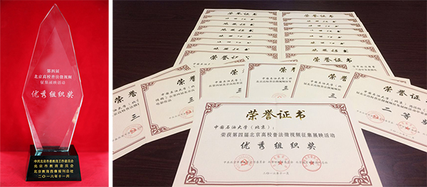党委宣传部和学生工作部联合组织了校内普法微视频的征集活动,把活动作为加强法治宣传教育的重要内容,广泛动员学生参与到微视频的创作中来。活动中,石大学生围绕弘扬社会主义核心价值观,立足弘扬法治精神,传播法治理念,通过对宪法、中国特色社会主义法律体系以及社会主义法治理念的学习和宣传,提高了法治意识。学校组织评委对征集到的40余件原创普法作品进行了评审,并推荐优秀作品参加第四届北京高校普法微视频征集展映活动。