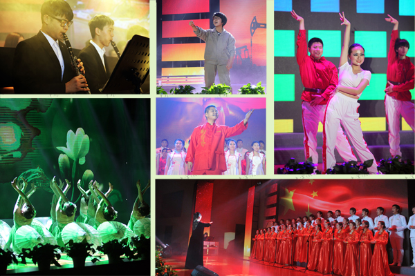 颁奖典礼上,多才多艺的石大学子为代表和嘉宾献上了管弦乐合奏《珠穆朗玛峰》、民乐合奏《光明行》、舞蹈《花开时节》《拉丁风石油情》、歌诗画《天耀中华》等精彩节目。第十二届国家奖学金暨企业奖学金颁奖典礼在《我为祖国献石油》的歌声里落下帷幕。