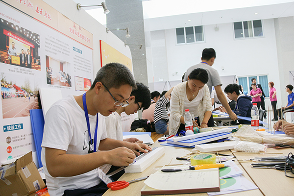 在模型制作环节,各队队员分工明确,配合默契,充分发挥创造力与动手能力;在平台稳定性实验测试环节,选手依序在模拟海洋中进行了静水面稳定性实验测试和模拟波浪稳定性实验测试。