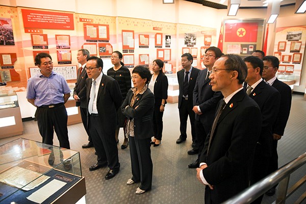 在参观中,党委书记山红红表示,2016年7月1日,习近平总书记在纪念中国共产党成立95周年大会上,向全党郑重提出了“不忘初心”的号召,并且作了系统深入阐述;在党的十九大上,“不忘初心,牢记使命”进一步上升为大会的主题,上升为新时代的主题。此次专题学习中,大家从党的发展历程中汲取理想信仰的力量,坚定继续前行的信心,对于进一步锤炼领导干部的党性修养,深入学习贯彻习近平新时代中国特色社会主义思想和党的十九大精神,都有着重要的推动作用。