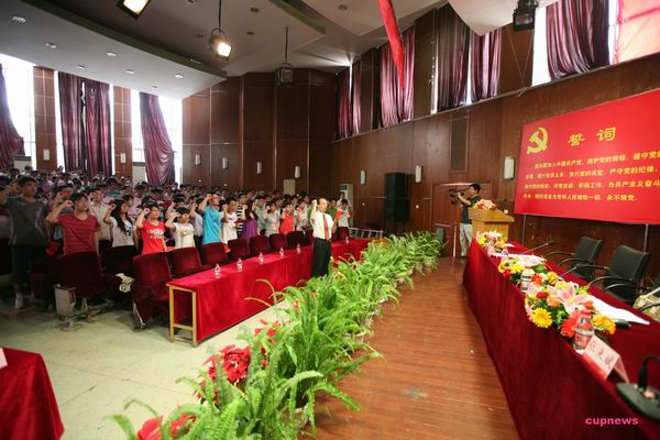 今年有905名同志加入中国共产党。在组织部部长鲍志东的带领下,新党员代表齐声朗读入党誓词,庄严宣誓。