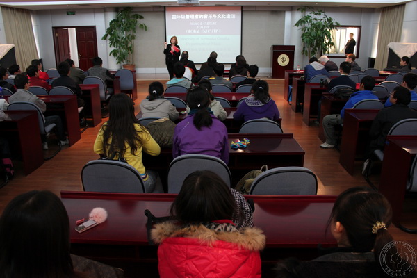 会谈结束之后,访问团在国际交流中心306报告厅为到场师生做了一场题为《国际级管理者的音乐与文化造诣》的精彩报告。
