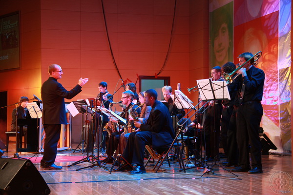 晚上7:30,由来自美国内布拉斯加大学奥马哈校区爵士乐团的13名团员在研修大厦三楼报告厅为全校师生演出了精彩绝伦的爵士乐音乐。音乐会上他们表演了包括Blues(蓝调)Standards Jazz(传统爵士) Swing(摇摆乐)Bossa NovaSmooth Jazz(平滑爵士)在内的8首歌曲,其精湛的表演技巧,充满激情的表演方式为全场的观众带了一场听觉盛宴。