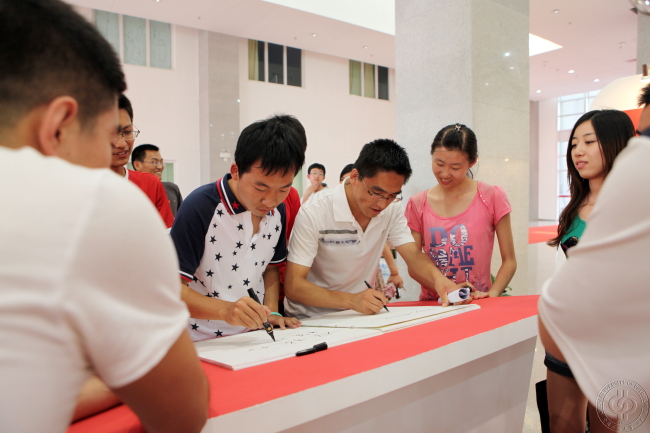 相关职能部门和有关单位负责人、离退休教师及各院系学生代表参加了开展仪式。仪式结束后,师生们纷纷在展览留言簿上签名留念,并写下了对石大美好明天的深深祝福。