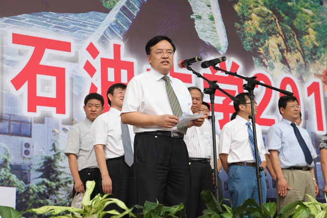 826上午,中国石油大学2011年新生开学典礼在红旗操场隆重举行,校领导蒋庆哲、张来斌、刚文哲、吴小林、陈大恩、徐春明,以及各院(系、部、中心)和各职能部门主要负责人出席了典礼,4000余名新生参加了典礼。开学典礼由副校长吴小林主持。