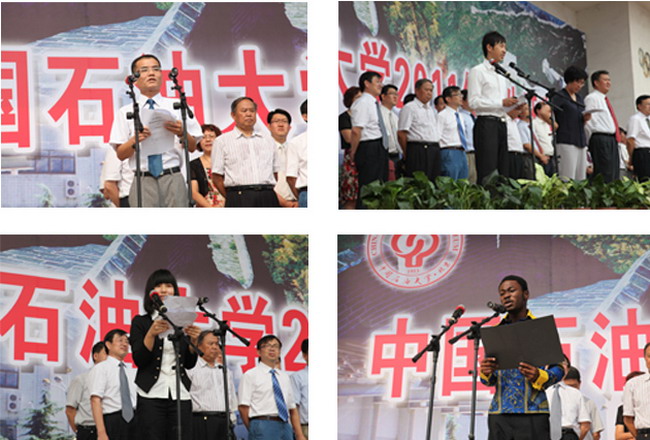 工商管理学院2011级本科生单清青代表新生发言,描绘了梦想,并立下了志愿。来自加纳的石油工程学院2011级本科生阿萨莫代表留学生新生讲话,用稍显生涩的中文却表达了对石油大学深深的热爱。地球科学学院2010级硕士研究生刘悦代表所有在校生向新生介绍经验、传授方法,帮助新生适应新的生活。机械与储运工程学院教师帅健教授代表广大教师向新生们的到来表示了欢迎,并寄托了老师们更多的期望。