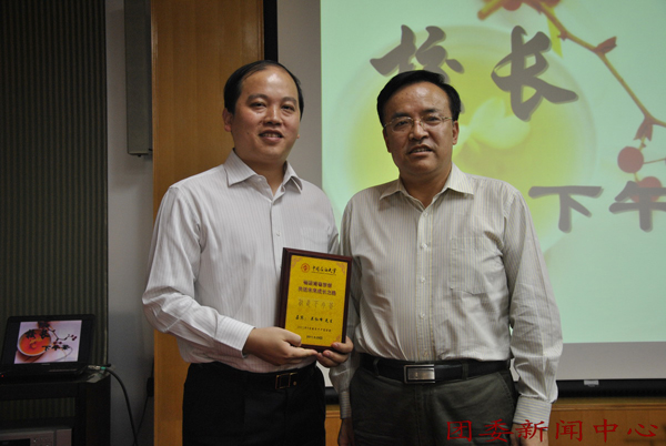 下午茶活动持续了两个多小时,张来斌向吴红峰赠送了“校长下午茶”纪念牌,并与参加活动的同学合影留念。
