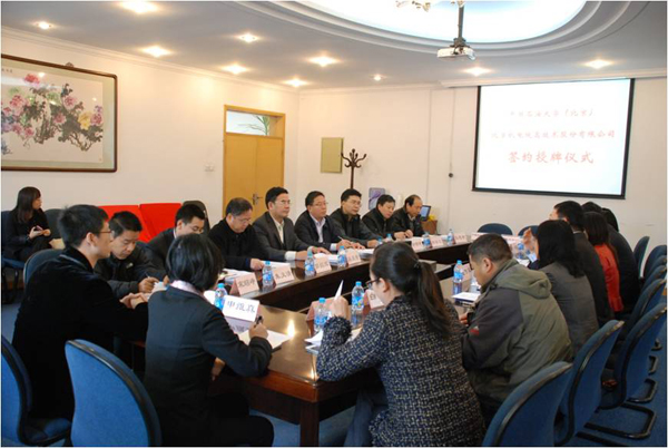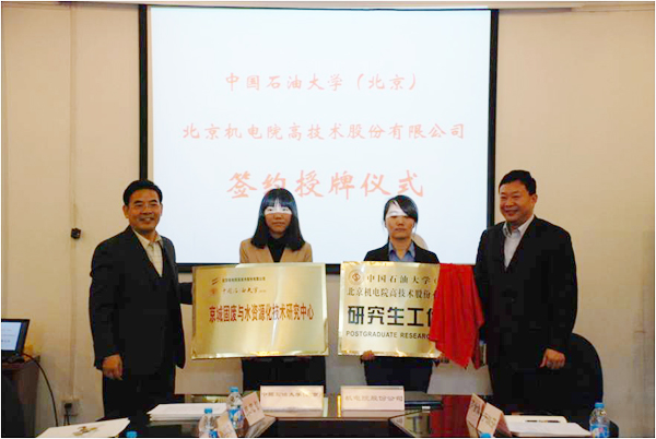 1114日上午,中国石油大学与北京机电院高技术股份有限公司举行了科学研究与人才培养合作框架协议签约授牌仪式。中国石油大学党委书记蒋庆哲、副校长徐春明,北京机电院高技术股份有限公司总经理赵传军出席签约授牌仪式,石大相关职能部门负责人、理学院教师代表参加了仪式。蒋庆哲、赵传军分别代表校企双方在协议书上签字,并共同为两家合作建设的“京城固废与水资源化技术研究中心”、“研究生工作站”揭牌。