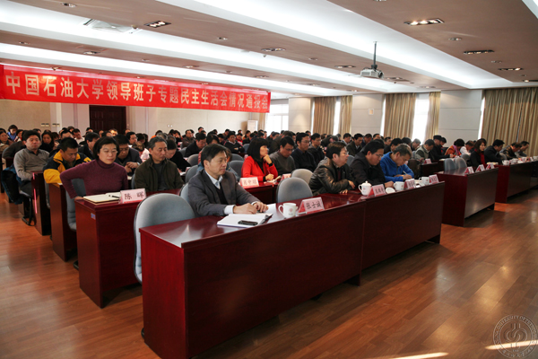 12月10日下午,中国石油大学召开党的群众路线教育实践活动校领导班子专题民主生活会情况通报会。教育部党的群众路线教育实践活动领导小组第二督导组副组长张中原、督导组成员王晓燕出席会议。学校全体校领导,校党委委员、纪委委员,全体处级干部,学校部分党代表、教代会主席团成员,市级以上党代表、人大代表、政协委员,民主党派负责人参加会议。会议由校长张来斌主持。