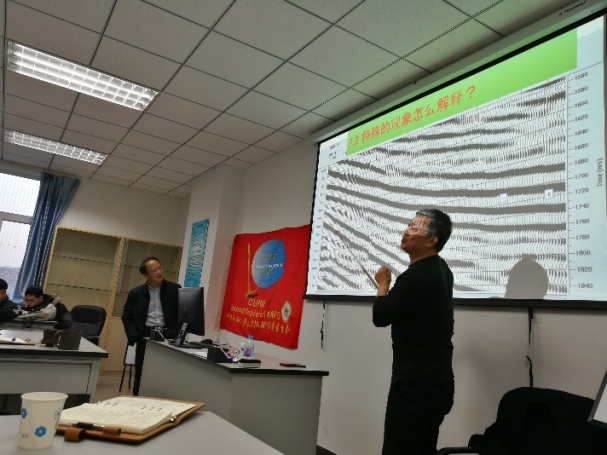 结合数十年来的地球物理资料处理方法研究和应用实践,曹教授从地震资料的主要内容、无序中寻找有序、质量监控、如何寻找地层的厚度信息、剖面中隐藏的信息及高信噪比、高分辨率处理等方面与师生进行了分享,并以研究工作中遇到的实例与参会教师进行热烈讨论和交流。大家一致认为地震资料的处理与地震地质解释相结合,才能更好的将地震资料运用到油气田勘探开发中去。