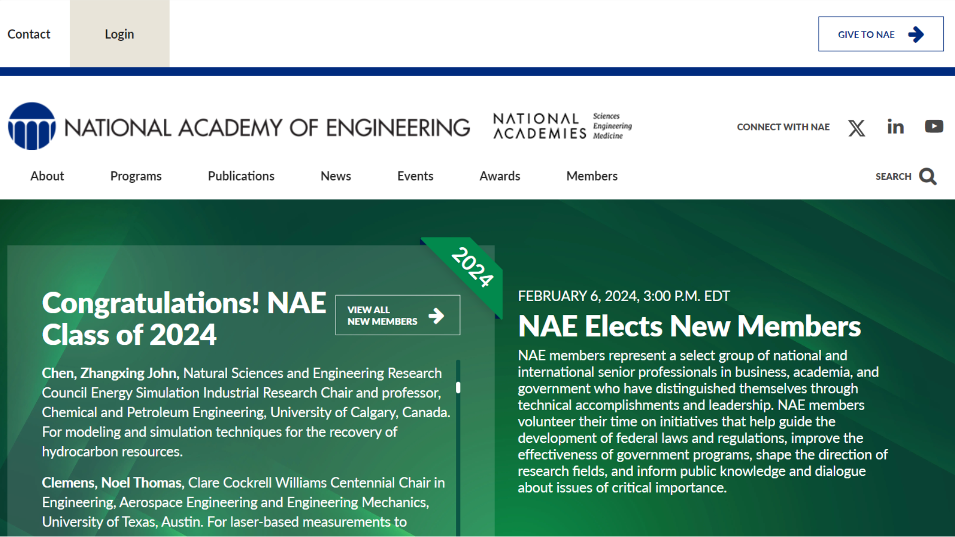 美国国家工程院院士是陈掌星教授继当选加拿大工程院院士、加拿大皇家科学院院士、中国工程院外籍院士后所获得的又一院士荣誉称号,以表彰他在构建现代油藏数值模拟理论体系方面作出的突出贡献。