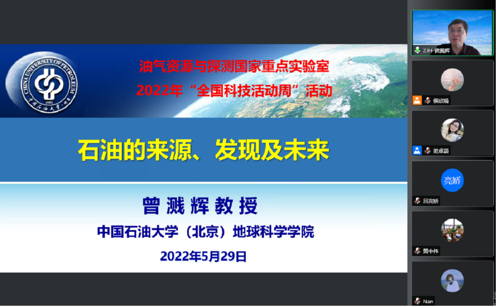 为积极响应2022年全国统一部署的科技活动周活动,大力弘扬科学精神,普及科学知识,宣传研究进展,5月29日,油气资源与探测国家重点实验室举办了以“能源报国,零碳未来”为主题的2022年科技活动周——云端科普讲座活动。