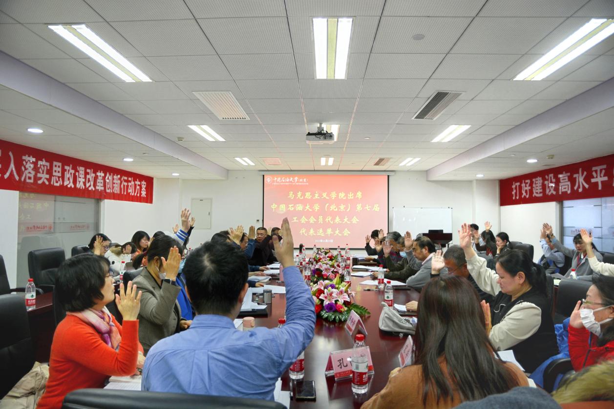 11月23日下午,马克思主义学院出席中国石油大学(北京)第七届教职工代表大会代表、第七届工会会员代表大会代表选举大会在主楼A1018会议室召开,大会由马克思主义学院第三届工会主席张冠军主持。