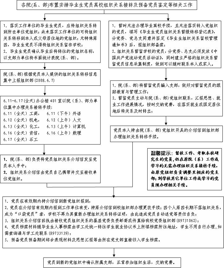 ☆ 中国石油大学2008年毕业生党员组织关系接转流程图 ☆