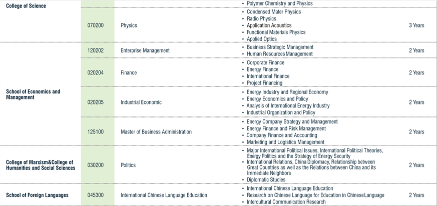В последние годы Китайский нефтяной университет стремится создать научно-исследовательский университет мирового класса, непрерывно адаптируя и совершенствуя свою систему подготовки специалистов высокого уровня и прикладывая усилия для создания конкурентоспособной академической среды. Устремляясь в будущее, образование в магистратуре и аспирантуре будет продолжать фокусироваться на принципах человеко-ориентированных реформ и инноваций с оптимизацией структуры и акцентом на уникальных характеристиках, улучшении качества и достижении выдающихся результатов. Служа стратегии национального энергетического развития, мы уже выработали продуманную и завершенную систему образования с прицелом на воспитание высококлассных перспективных специалистов и инноваторов, перед которыми открываются международные горизонты. Магистратура и аспирантура Китайского нефтяного университета привержены климату многообразия на территории кампуса, улучшению опыта обучения, а также развитию во всех своих студентах сознания гражданина мира.