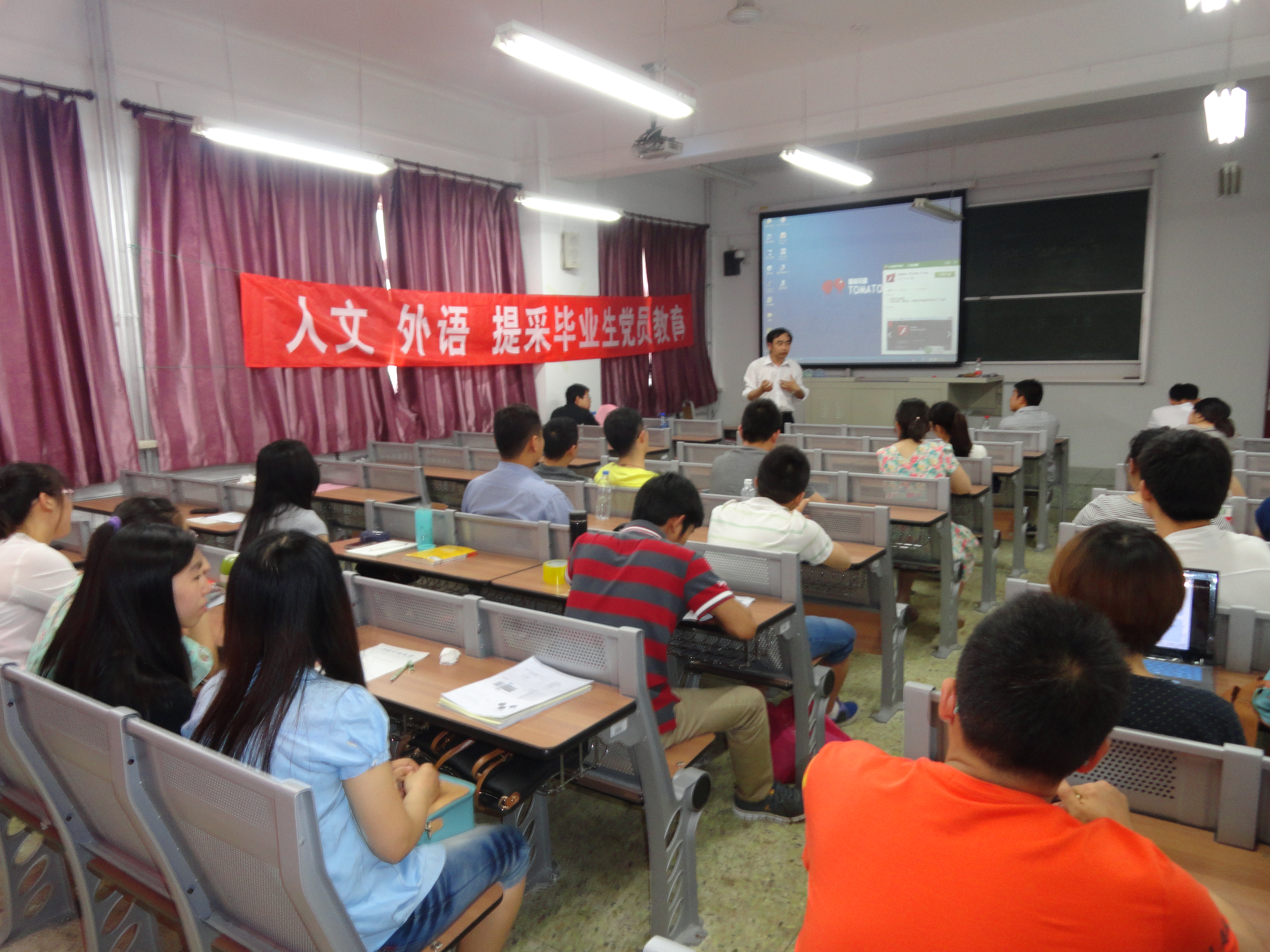 在毕业生即将离开母校之际,5月30日上午,人文学院、外语学院和提高采收率研究院在一教109联合举办毕业生党员教育活动。人文学院副院长曹培强为毕业生党员做了题为“信仰,一个人内心的坚守”的主题讲座。此次活动由人文学院辅导员车俊豪主持,外语学院和提高采收率学院辅导员及三院众多毕业生党员参加。