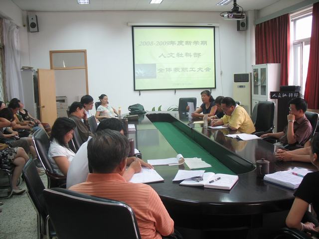 8月29日上午,人文及社会科学部在部会议室召开全体教职工大会。会议议程主要有两项:首先四位部领导结合年度工作要点,根据分管工作分别进行本学期工作部署,第二项议程是教学观摩及教学体会交流。胡新华主任在讲话中首先对暑假各位坚守工作岗位的教职工表示衷心的感谢,希望全体教职工以满腔热情投入到新学期的教学和人才培养工作中,当前主要做好校庆55周年相关工作,各教研室和教工党支部要继续结合自身学科特点广泛参与校园文化建设,营造良好的人文氛围。全体教职工要以高度主人翁意识积极参与职工之家的建设、积极献计献策配合部领导班子进一步做好人事分配制度改革。丁英宏、李卫红副主任和肖中琼书记分别从本科教学、研究生人才培养和党建思想政治工作等方面强调本学期工作重点。
