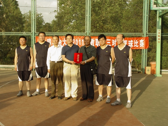 5月25日---30日,由校工会组织的教职工三人篮球赛在南校区运动场拉开了帷幕。我院教职工踊跃参加,组建了一支以赵庆海书记为领队,胡新华院长为教练,由徐斌、王鸣野副教授、张冠军、甄小东博士为队员的队伍。在比赛中,我院篮球队员自觉遵守比赛规程,听从指挥,服从裁判,发扬友谊第一,比赛第二和更高、更快、更强的体育精神,顽强拼搏,奋力争先,赛出了风格,赛出了友谊,赛出了水平!精彩的投篮,漂亮的虚晃,搏得了阵阵掌声。在场外观看的师生们更是鼓足了劲儿,不断的呐喊助威,现场气氛十分活跃。共有17个分工会组队参赛,分为4个小组,我院和体育教学部、工商管理学院、外语系分为C组, 经过4场比赛的激烈角逐,我院取得小组第二名,晋级复赛,最终获得全校第八名的优异成绩。